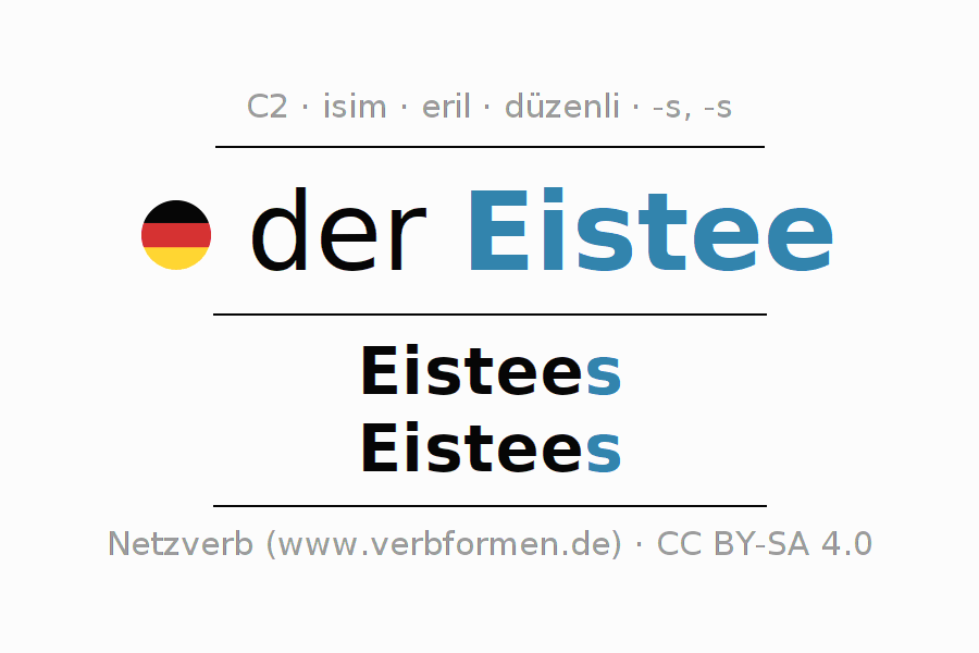 - Çoğul: die Eistees, der Eistees, den Eistees, die Eistees